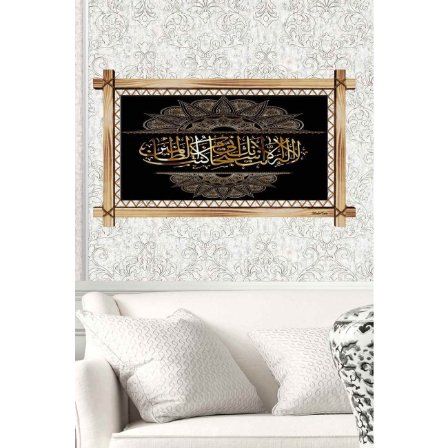 HAT SANATI İLE SİYAH GOLD AYET RUSTİK LEDLİ TABLO