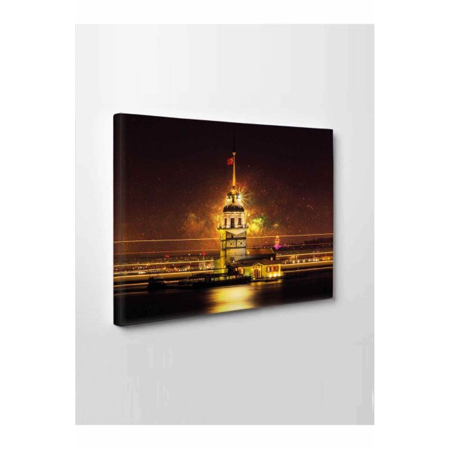 KIZKULESİ VE GECE LEDLİ KANVAS TABLO