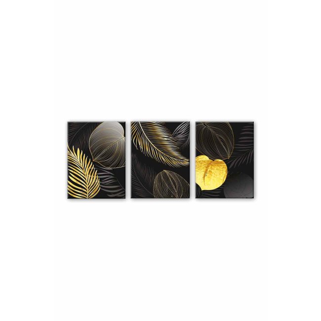 SİYAH GOLD AMBİANS 3LÜ KANVAS TABLO