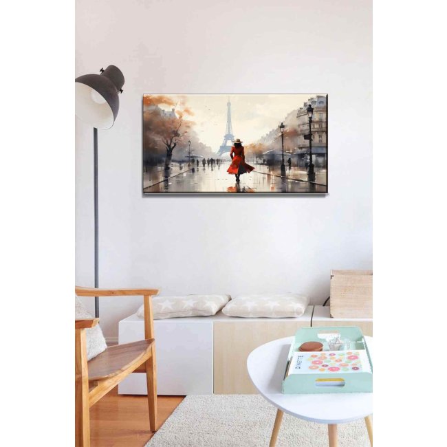 SOYUT PARİS SOKAK KIRMIZILI KADIN KANVAS TABLO