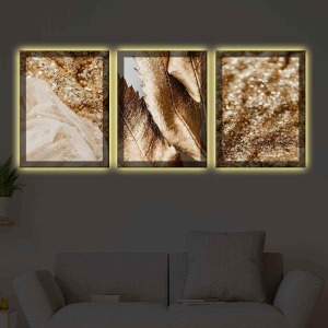 FIRÇA TARZI SANATSAL 3LÜ LED IŞIKLI KANVAS TABLO