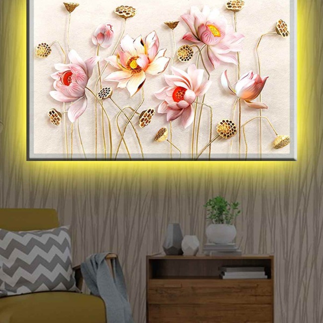 YAĞLI BOYA STİL ÇİÇEKLER LEDLİ KANVAS TABLO