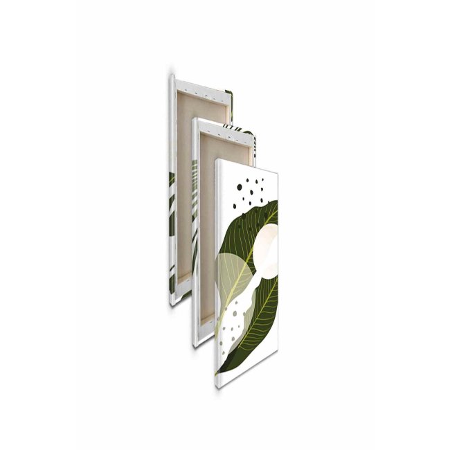 YEŞİL BEYAZ YAPRAK SET 3LÜ LED IŞIKLI KANVAS TABLO