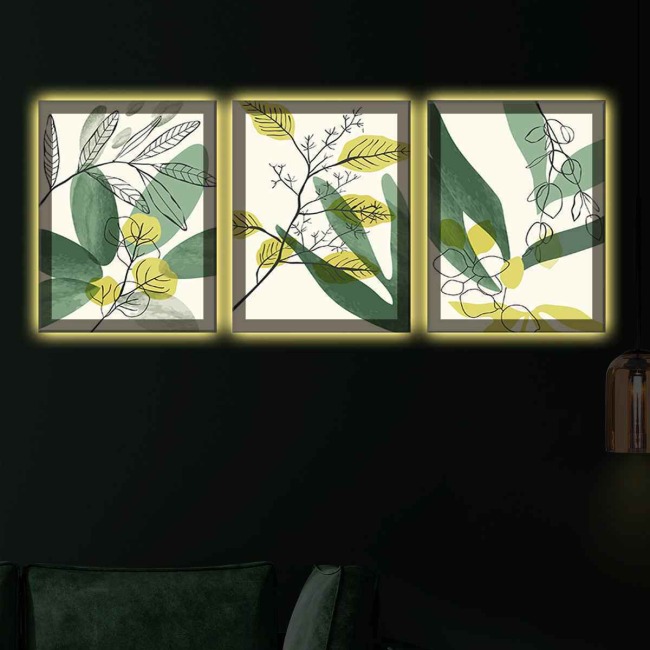 YEŞİL YAPRAKLAR 3LÜ LED IŞIKLI KANVAS TABLO